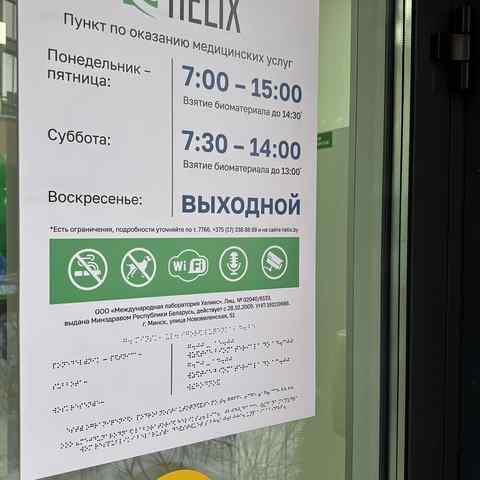Международная лаборатория HELIX (ХЕЛИКС) предлагает обширный спектр анализов — более 1500 исследований для диагностики и контроля здоровья. От стандартных лабораторных анализов до сложных генетических тестов. В Беларуси работает свыше 60 отделений сети, что позволяет клиентам выбрать лабораторию с наиболее удобным расположением. Также доступна услуга выезда на дом для забора биоматериала.